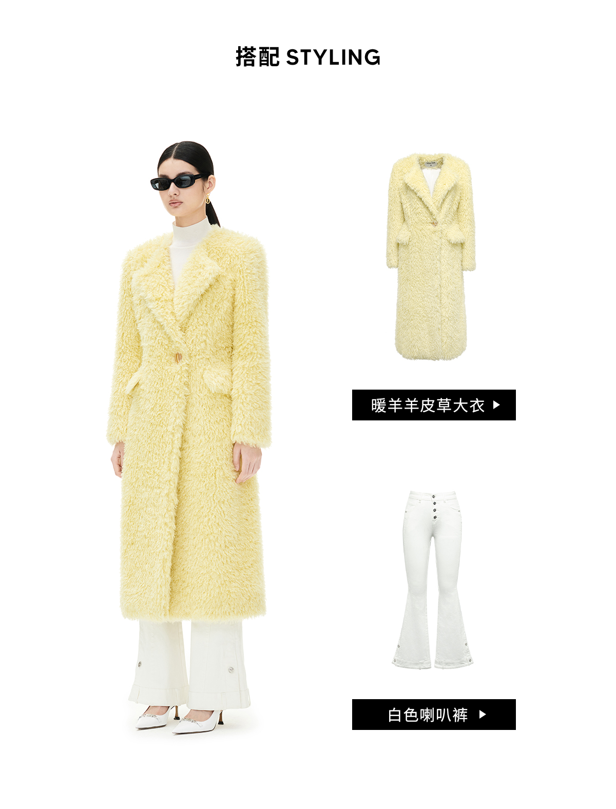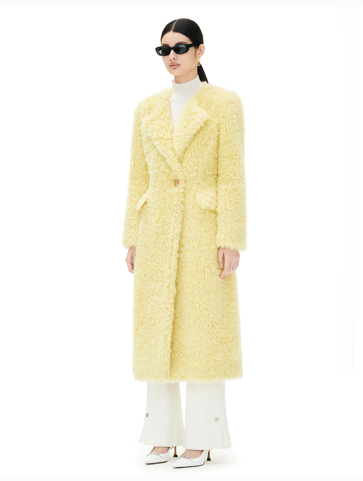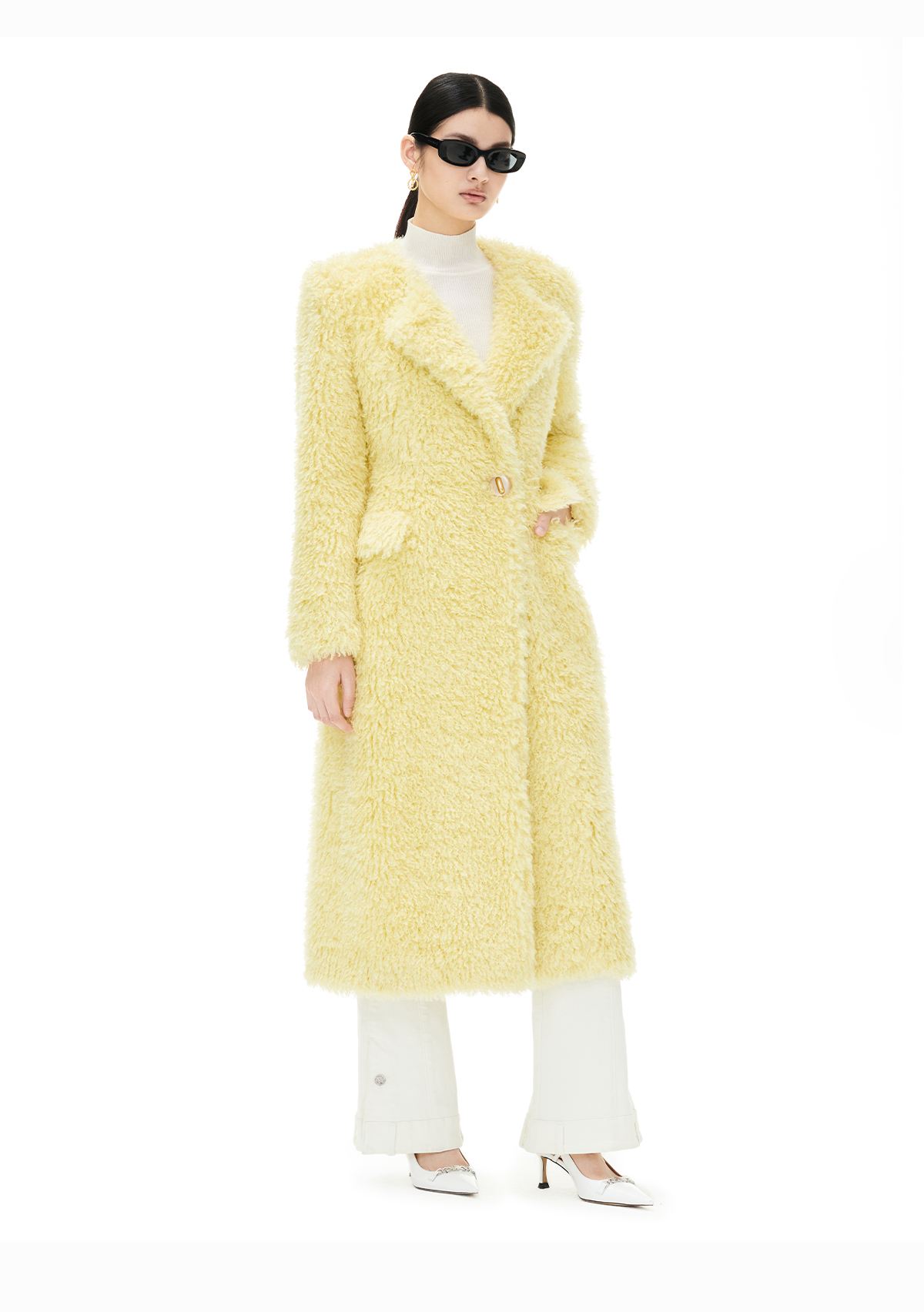 YES BY YESIR autumn winter wool coat yelow sheep sheepskin coat - Xeela
