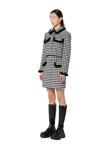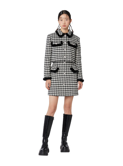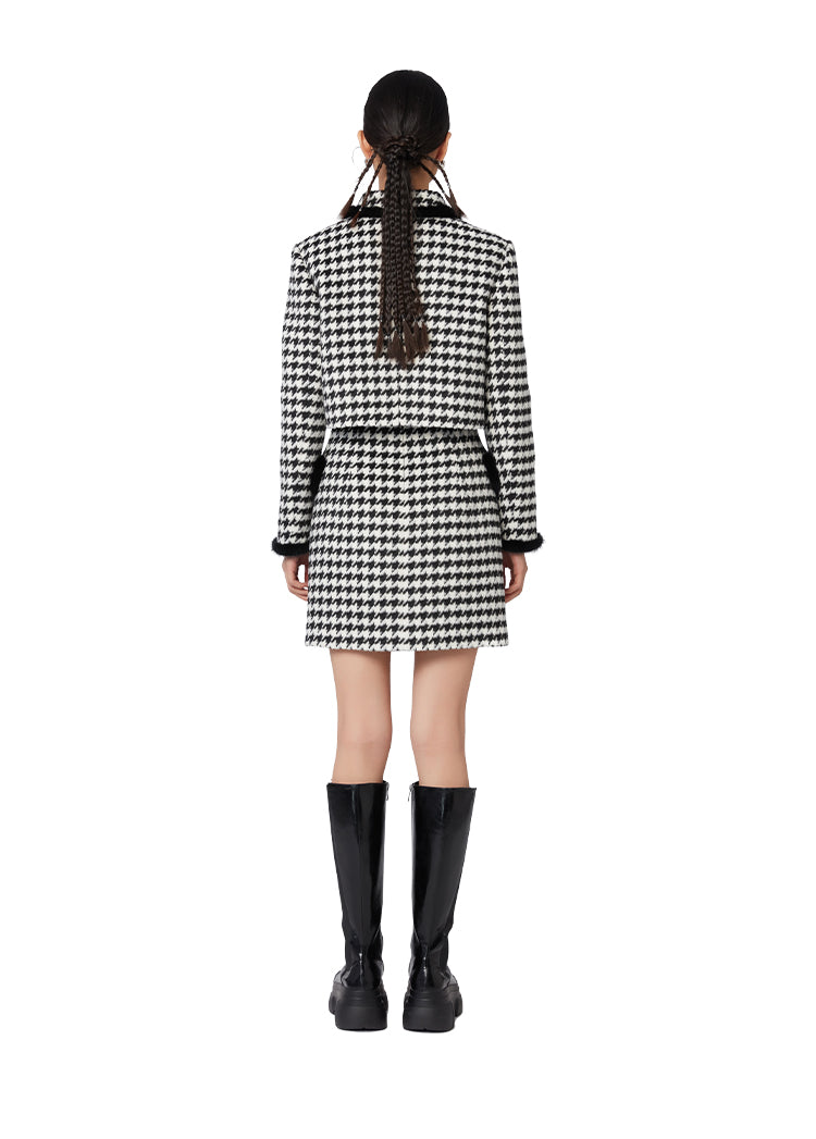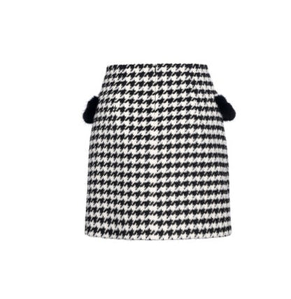 The YES BY YESIR Jacki skirt is the perfect blend of classic and contemporary style. Crafted from a luxurious black houndstooth fabric, the short skirt is as sexy and girly as it is gorgeous and chic. Whether you're looking for an outfit to wear for a date night, a night out on the town, or just a stroll around the block, this skirt is sure to make a stylish statement.