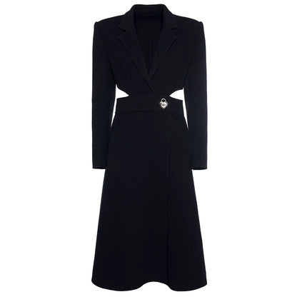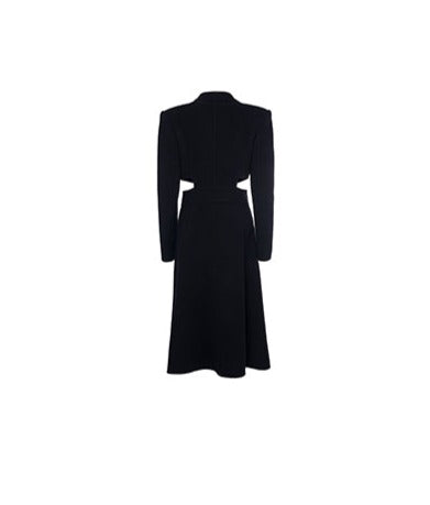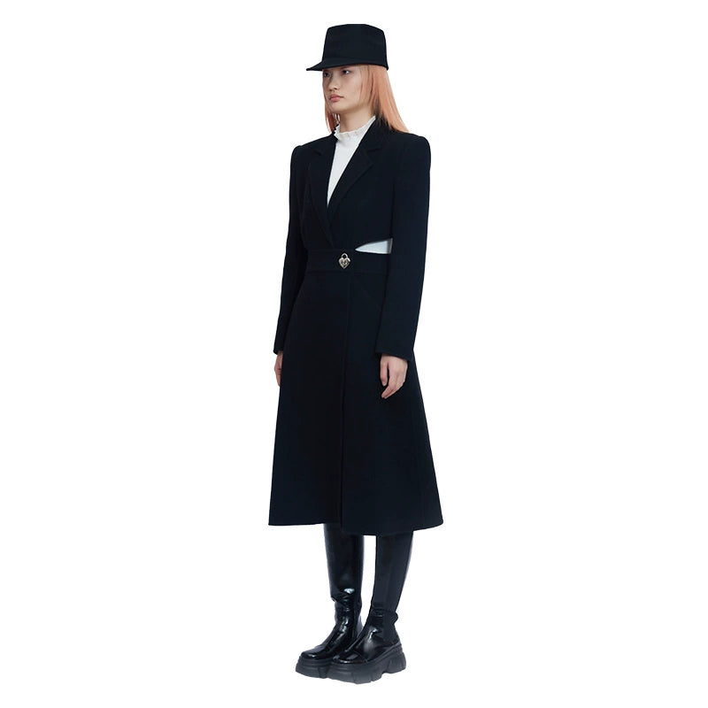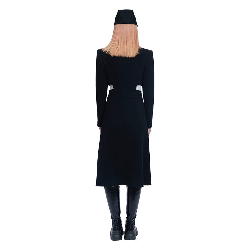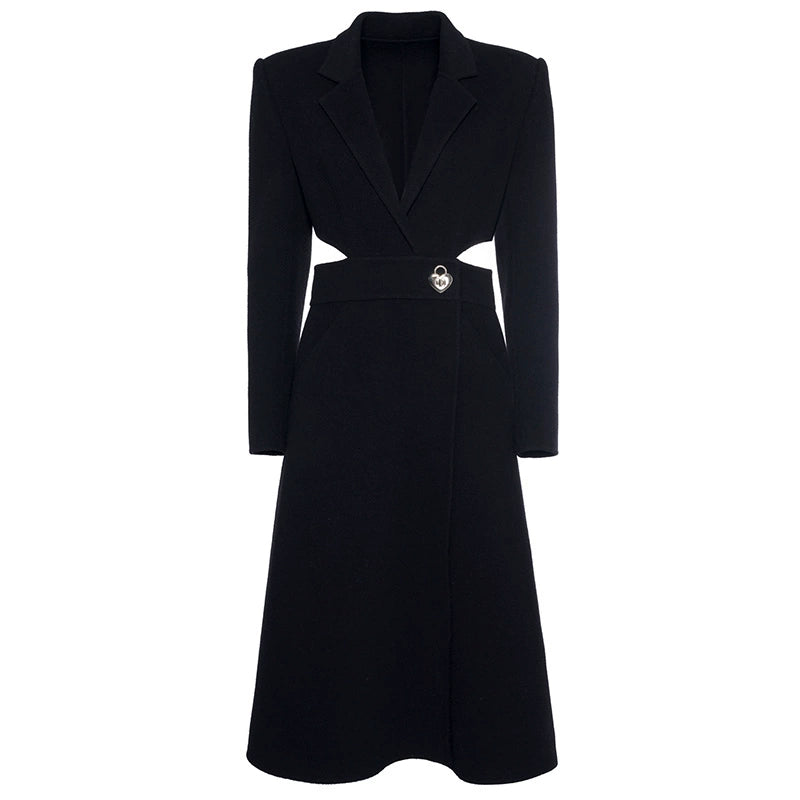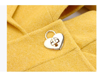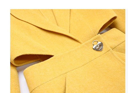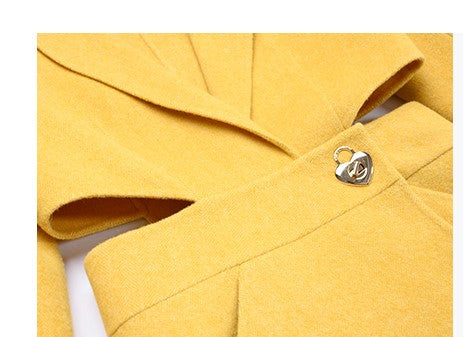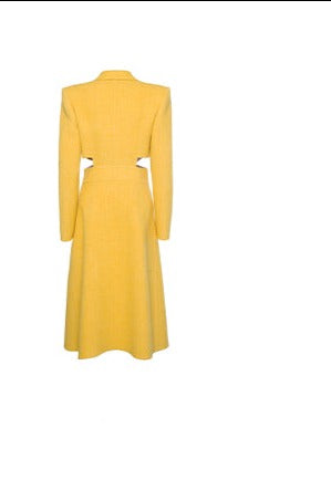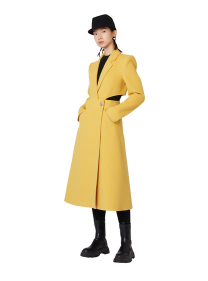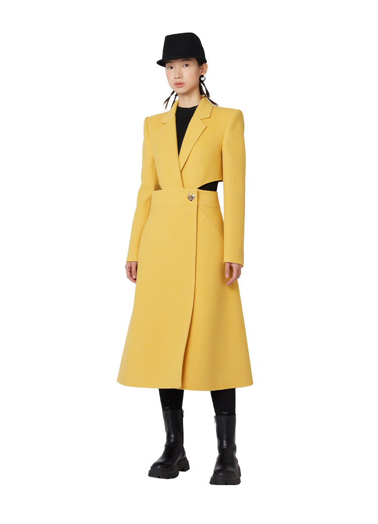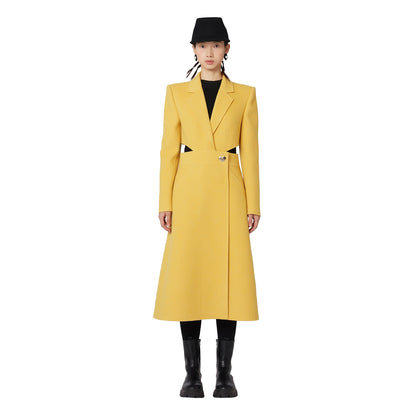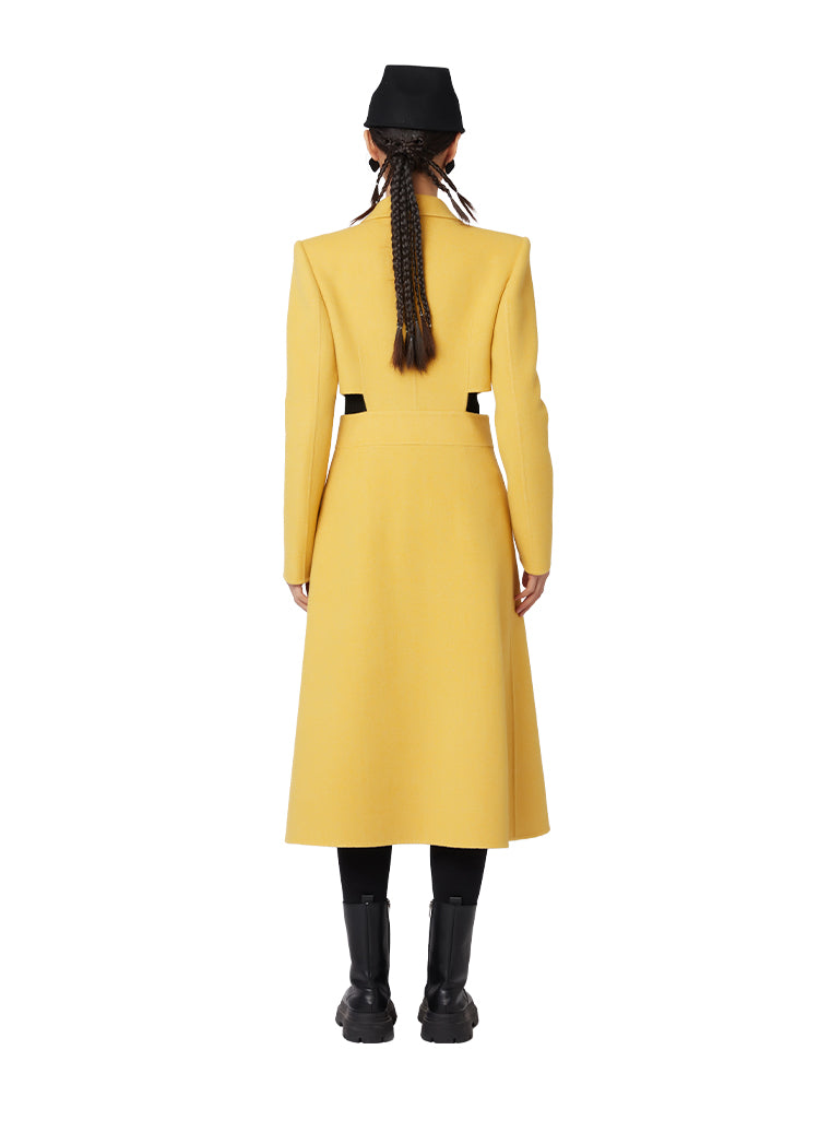 YES BY YESIR cashmere wool high-end yellow black small waist fine long coat - Kara