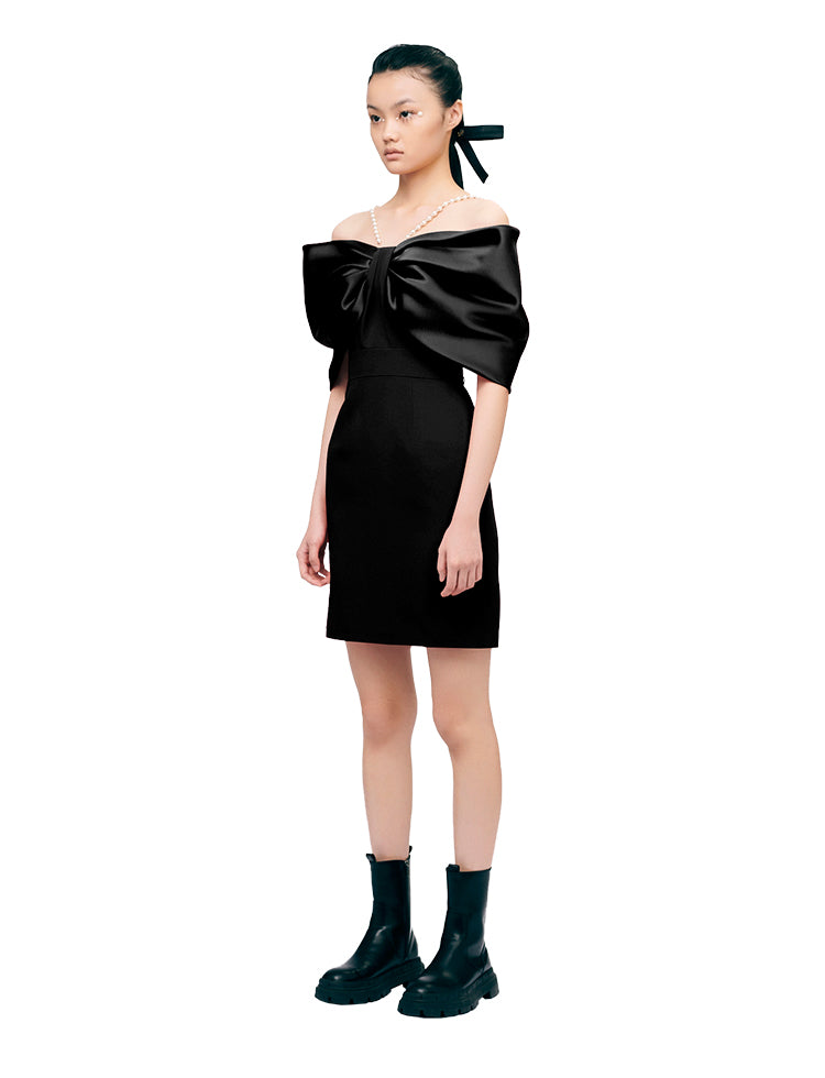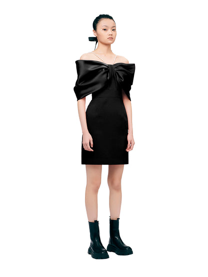 YES BY YESIR off-shoulder oversized bow short dress -Liu.