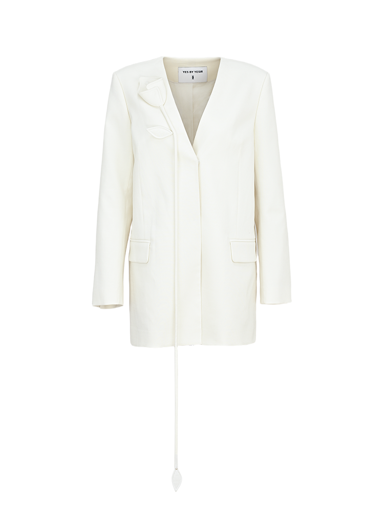 YES BY YESIR | Calla Lily Monroe Loose White Blazer -VIRELIA.