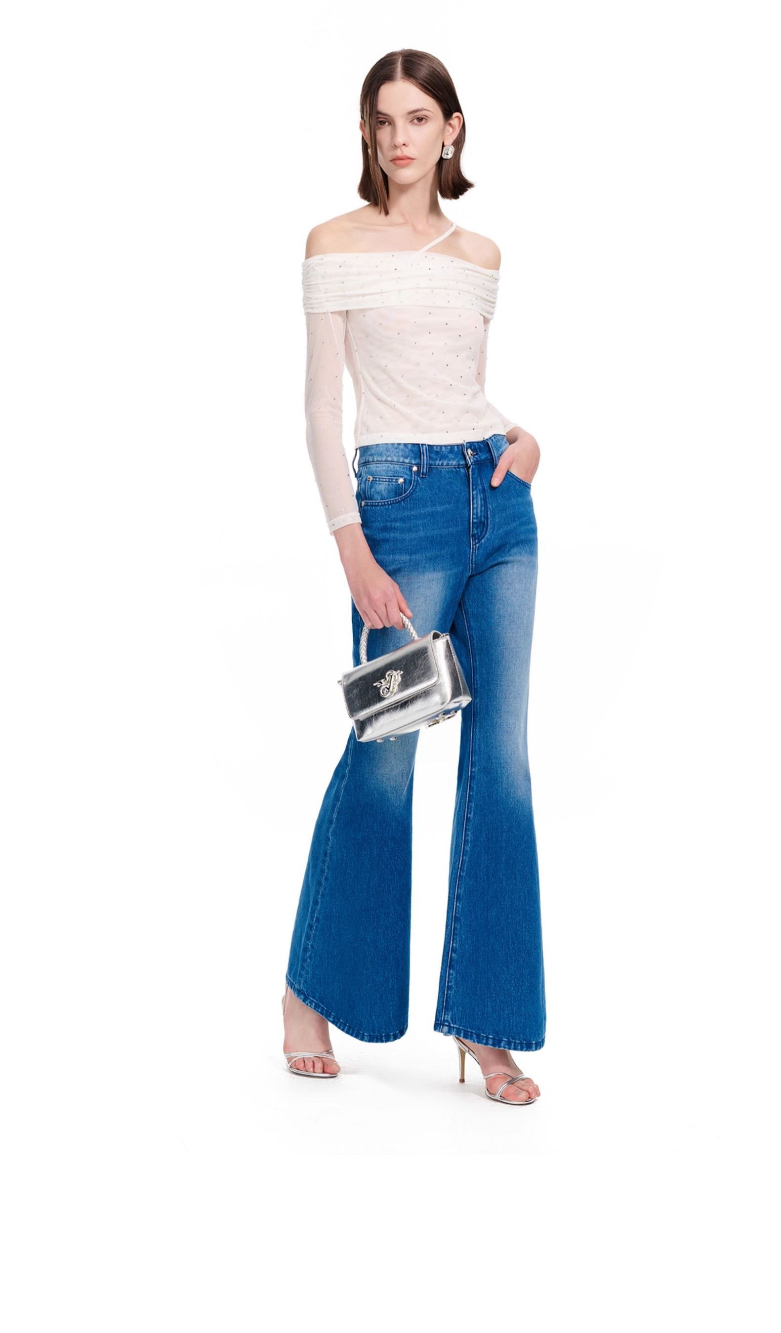 YES BY YESIR | Blue Flared Jean Pants -LIVARA.