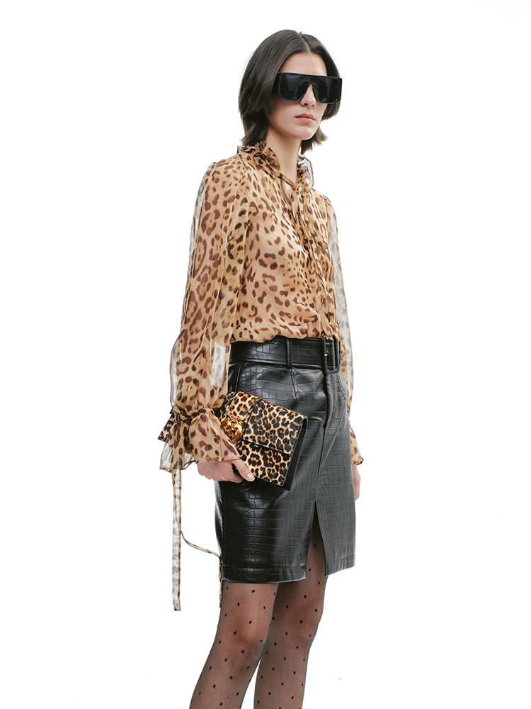 YES BY YESIR | Leopard Print Streamer Long Sleeves Shirt -ARYELLA.