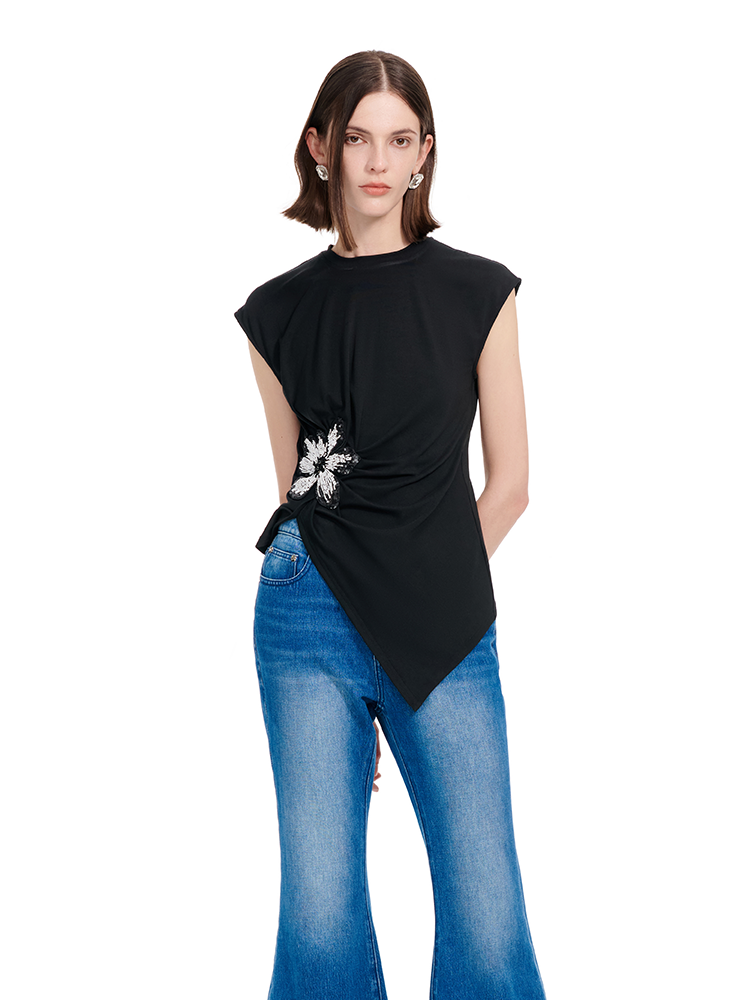 YES BY YESIR | Deconstructed Embroidered Asymmetric Top -MAELINA.