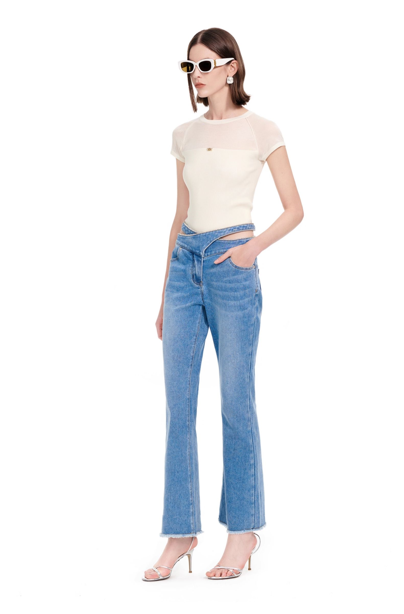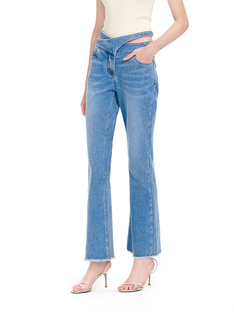YES BY YESIR | Deconstructed Waistband Bootcut Jeans -RENELLE.