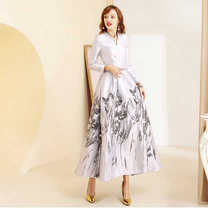 Old money style jacquard V-neck limited edition autumn winter dress- Cintia