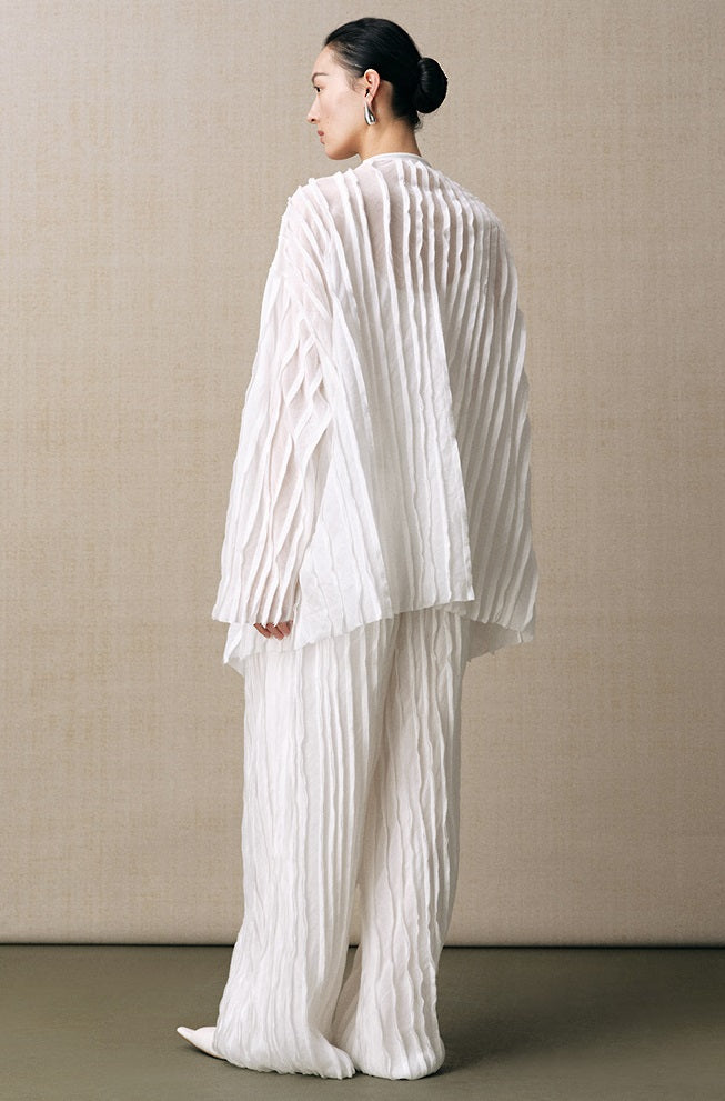ZHUCHONGYU white loose pleated top and pant outfit set--SOUSOU.