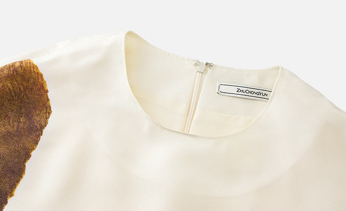 ZHUCHONGYUN crew neck midi cocoon printed dress-KOMACHI.