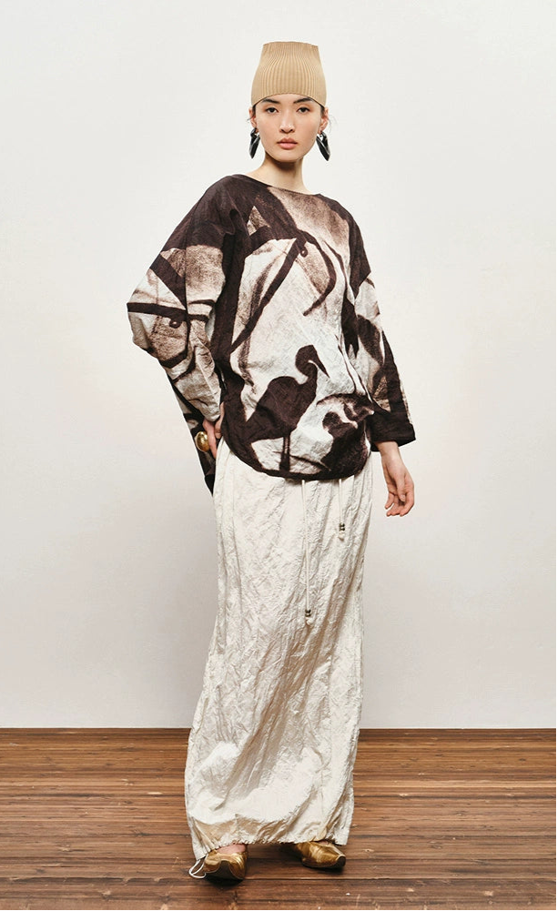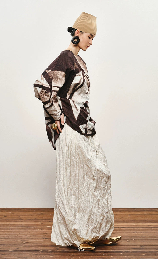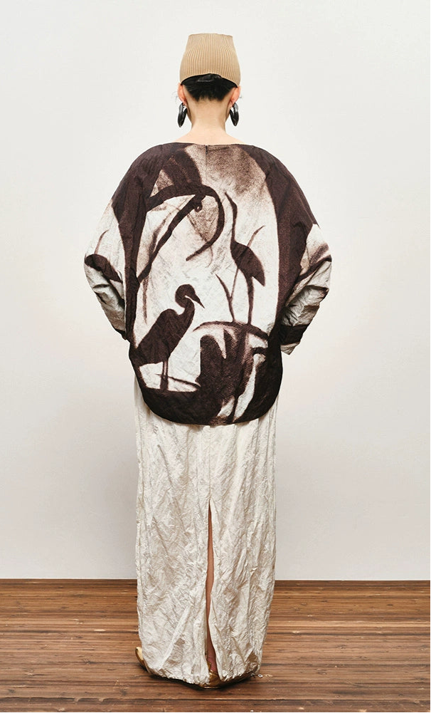 ZHUCHONGYUN stork leaf autumn song curved hem top--LUPIN.
