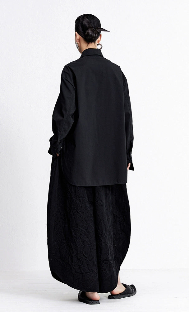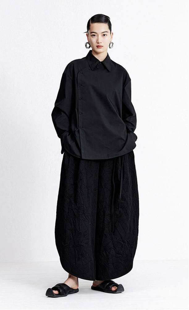 ZHUCHONGYUN black diagonal placket lapel loose straight shirt-LUFFY.