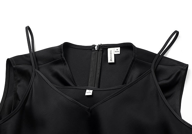 ZHUCHONGYUN crew neck black satin irregular sleeveless top-ASH.