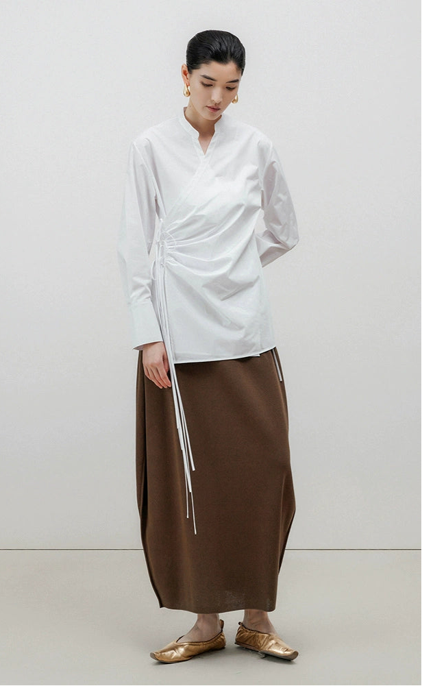 ZHUCHONGYUN brown loose cocoon knitted midi skirt-JERRY.