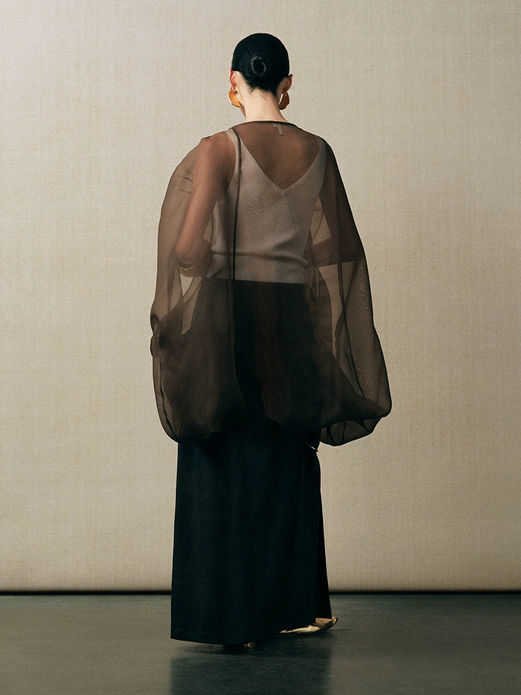ZHUCHONGYUN Brown gauze cocoon top -NATSU.