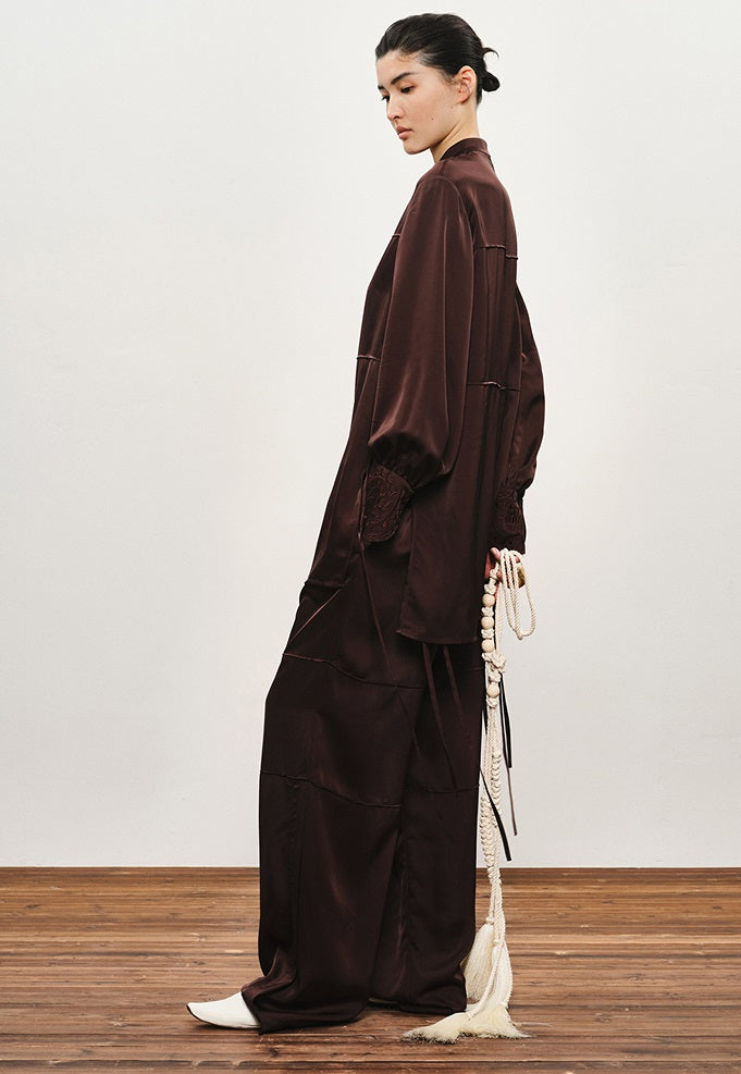 ZHUCHONGYUN Dragon Pattern Embroidery Lace-up Collar Shirt--AKEMI.