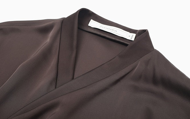 ZHUCHONGYUN Brown long-sleeve midi wrap dress-TRAIFY.