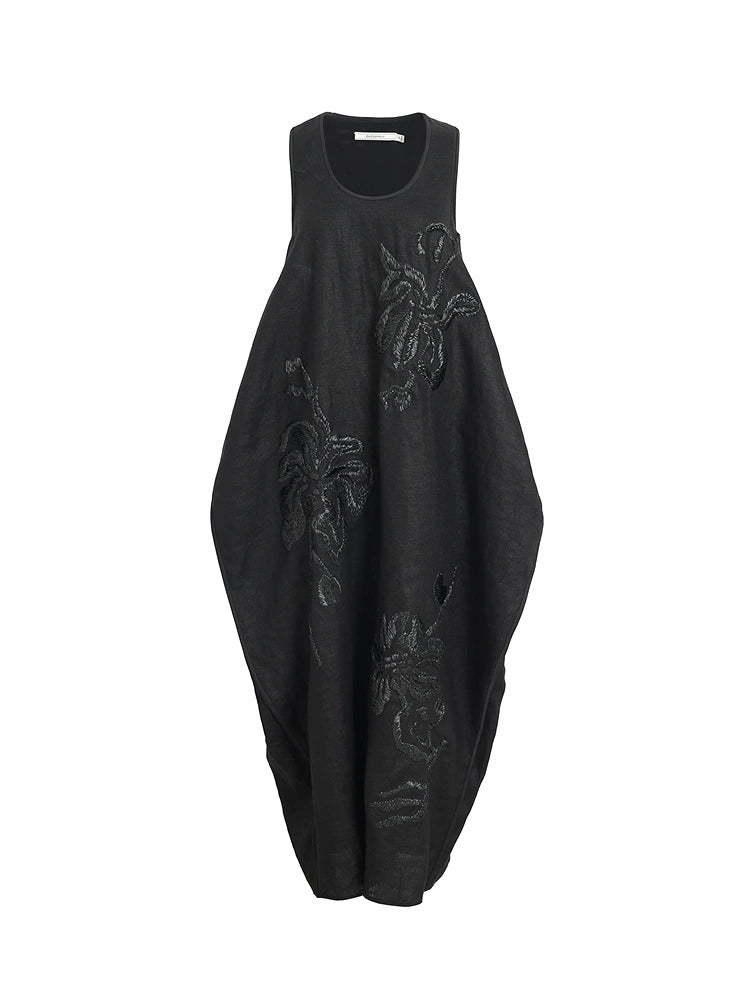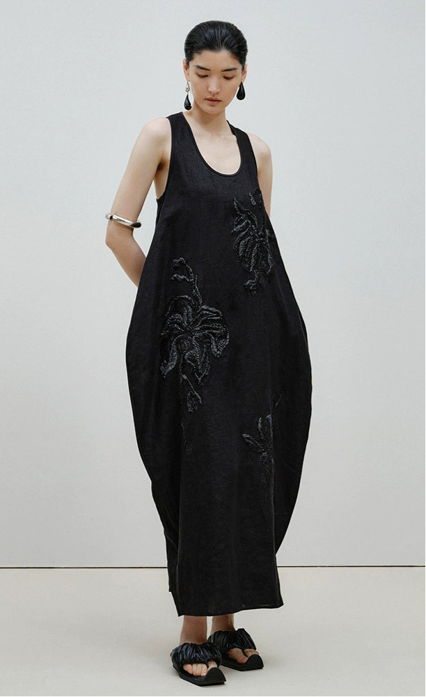 ZHUCHONGYUN Embroidery Sleeveless Deep U Neck Loose Dress--KAORI.