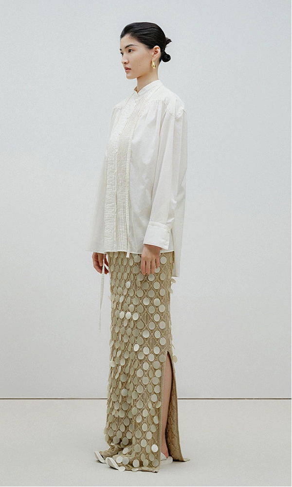 Elevate your wardrobe with the handmade sequential embroidery long knitted skirt. Expertly crafted, this skirt features intricate embroidery that adds refined texture and visual interest. Its long, knitted design offers both comfort and elegance, making it a versatile piece for sophisticated occasions. The meticulous handmade details ensure a unique, high-quality garment that embodies timeless style.