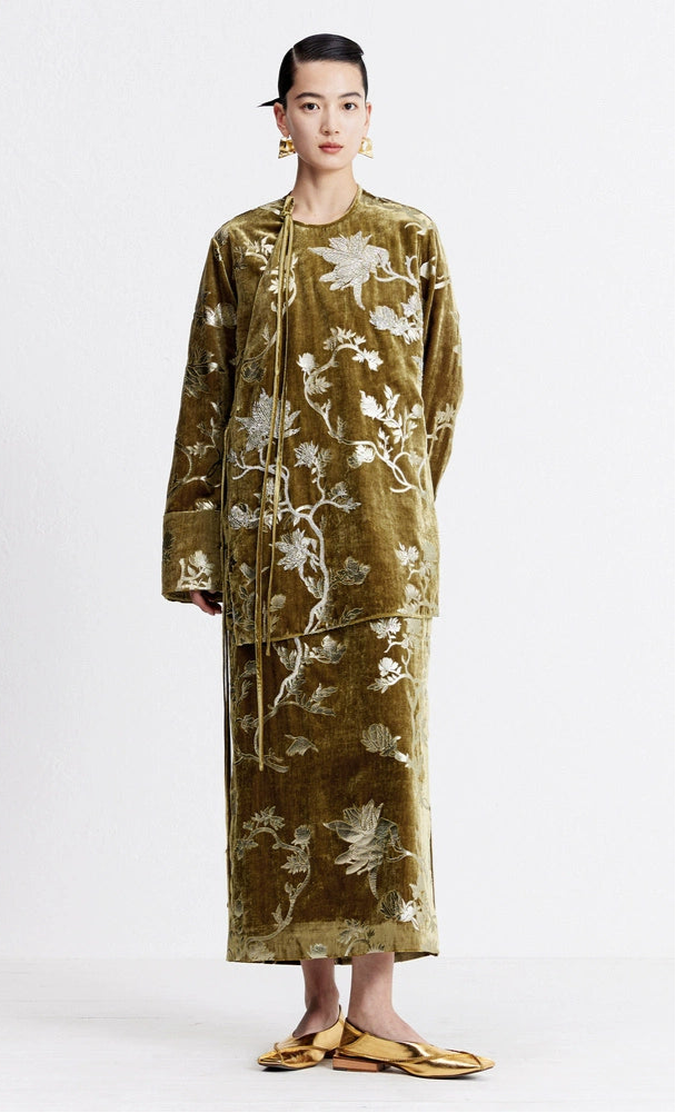 ZHUCHONGYUN brown floral long-sleeve round neckline shirt-KARMA.