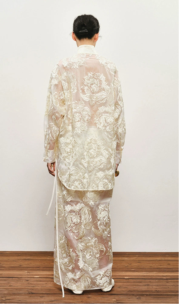 ZHUCHONGYUN mulberry silk oriental embroidery straight skirt-RINTAROU.