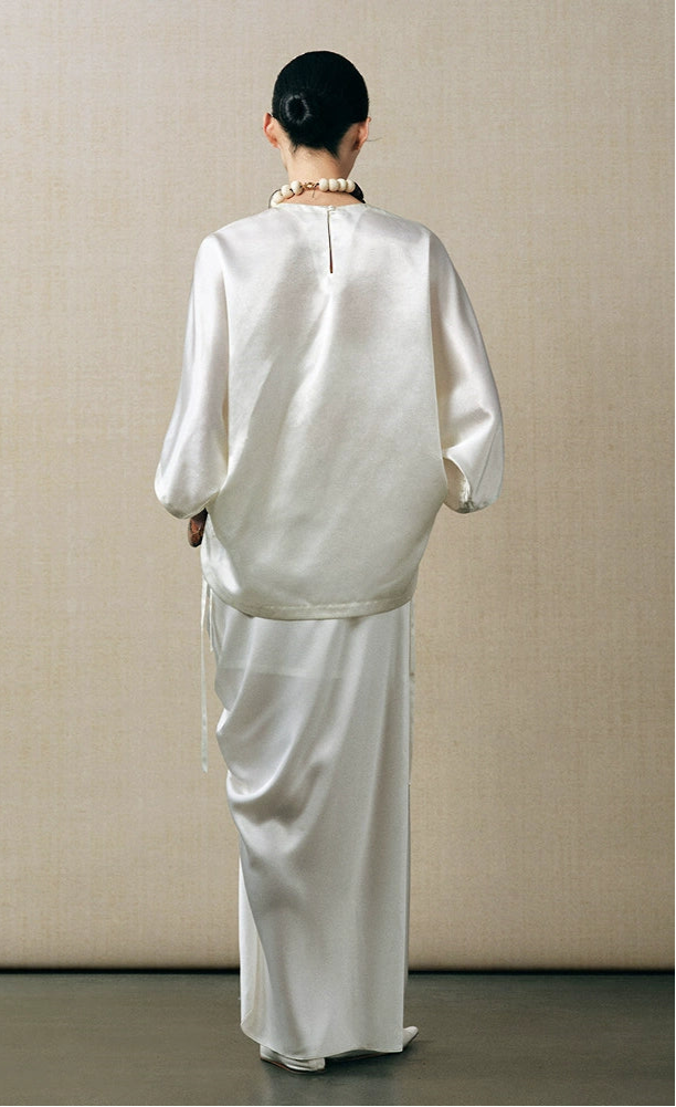 Elevate your wardrobe with the Oriental Flower Draft Drape Silhouette Top. This expertly crafted piece features a refined drape silhouette that flatters every figure, enhanced by delicate oriental floral patterns. Its sophisticated design merges traditional artistry with modern elegance, making it perfect for both formal occasions and stylish everyday wear. Experience a seamless blend of comfort and grace with this standout top.
