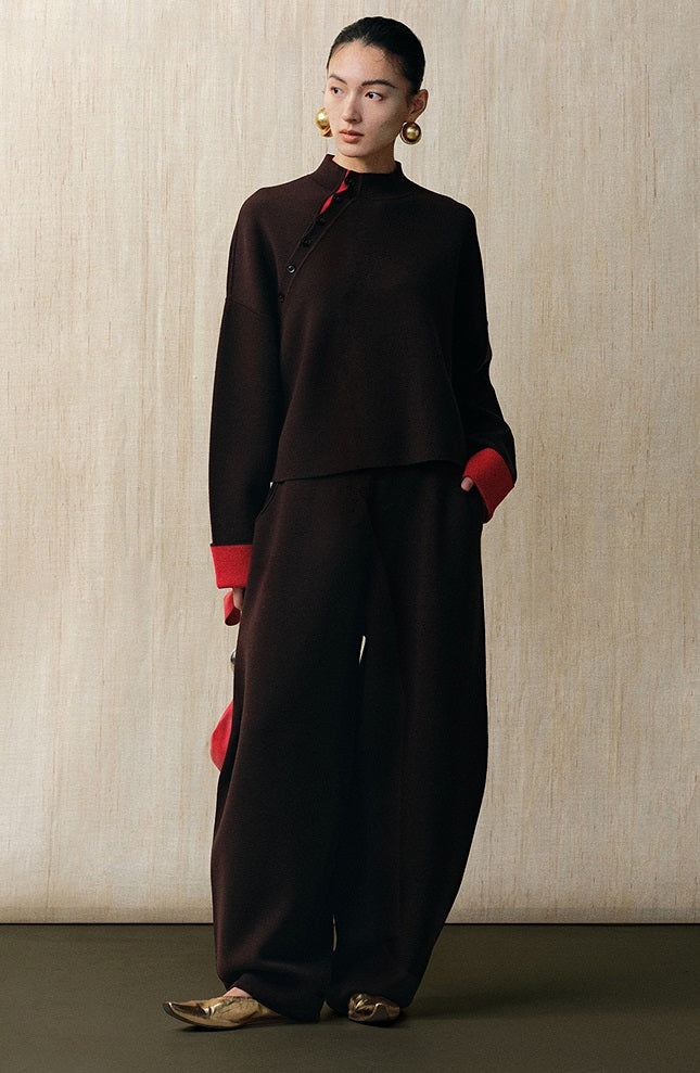 ZHUCHONGYUN double-sided loose crewneck wool knit top and pant set- PIN.