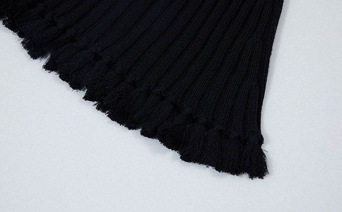 Crafted with premium sheep wool, the  black textured skirt showcases expert knitting and elegant tassel details. Its rich texture and fine craftsmanship provide warmth and a sophisticated silhouette, making it a refined choice for both casual and formal settings. The skirt’s design blends comfort with style, ensuring lasting wear and timeless appeal.