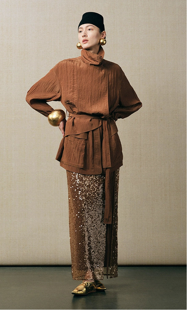 ZHUCHONGYUN stand-collar silhouette trench crepe jacket-GRIFFITH.