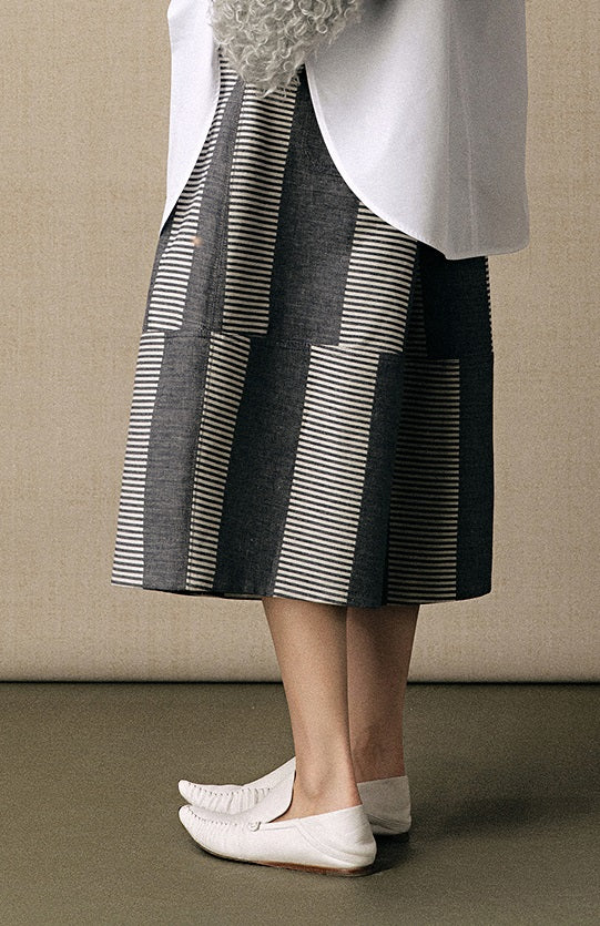 ZHUCHONGYUN striped splicing voluminous cotton and linen blend loose pants-CONAN.