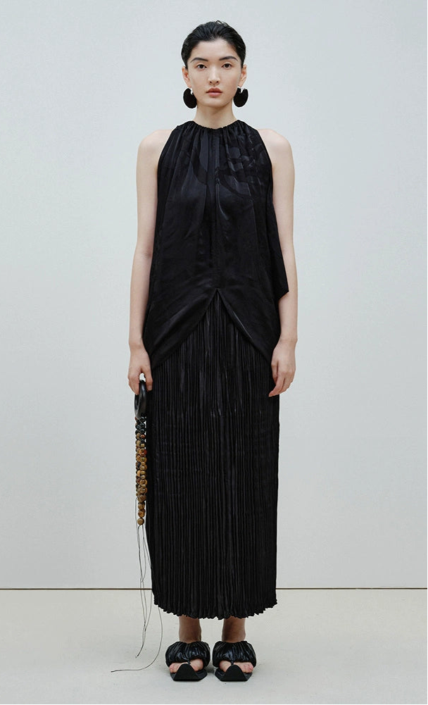 ZHUCHONGYUN Black Jacquard Drawstring Lace-up Sleeveless Top-CHUG.