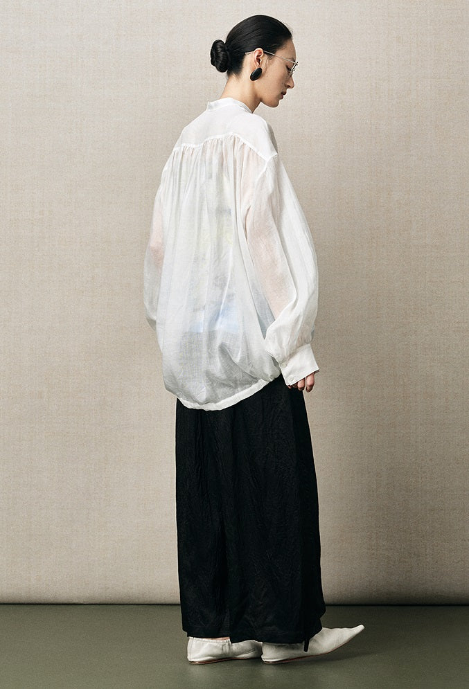 ZHUCHONGYUN placket drawstring loose light balloon sleeve top-RAMIE.