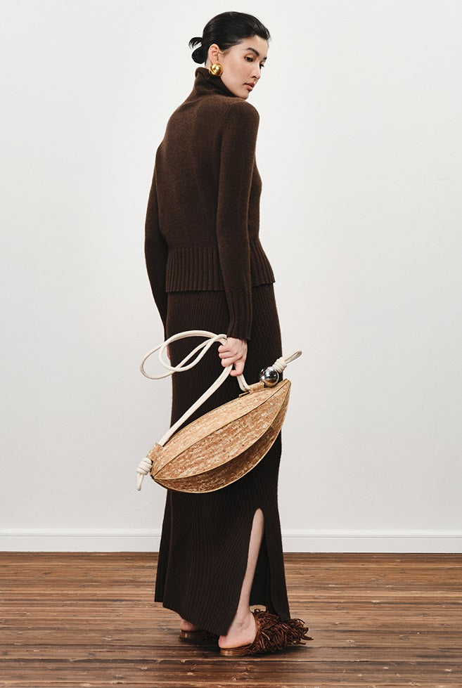 ZHUCHONGYUN Dark brown slim lapel collar knit top-SPIFF.
