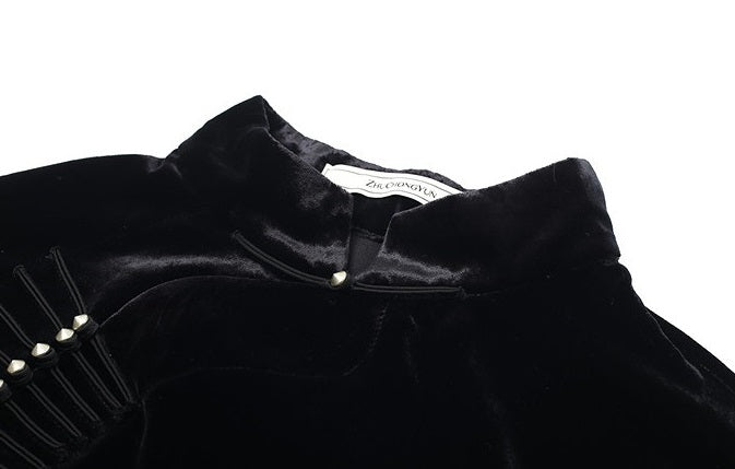 ZHUCHONGYUN bead-breasted loose long sleeve high collar top-JUNE.