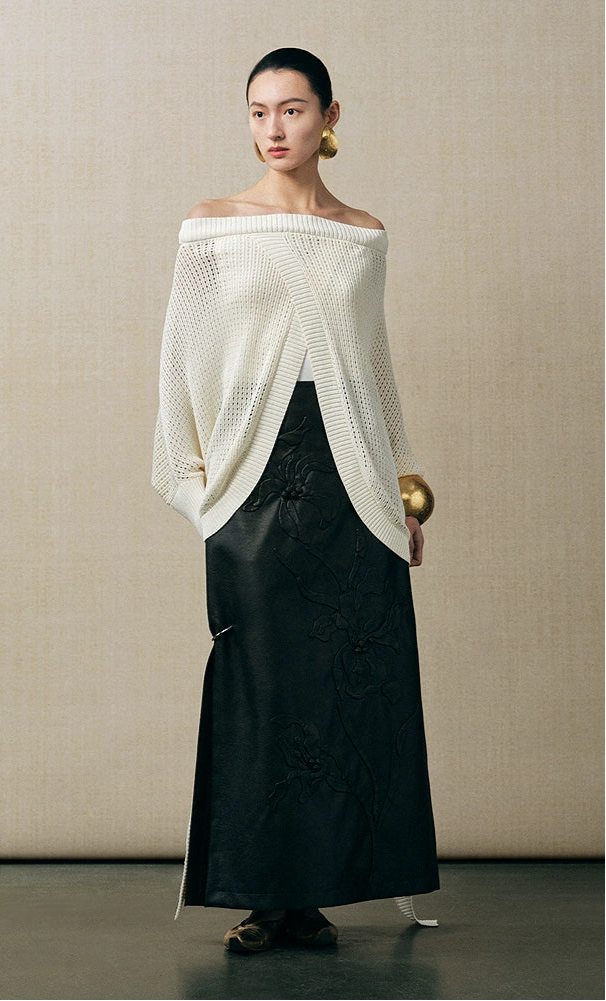 ZHUCHONGYUN cut-out mesh smock knit top-FREEZA.